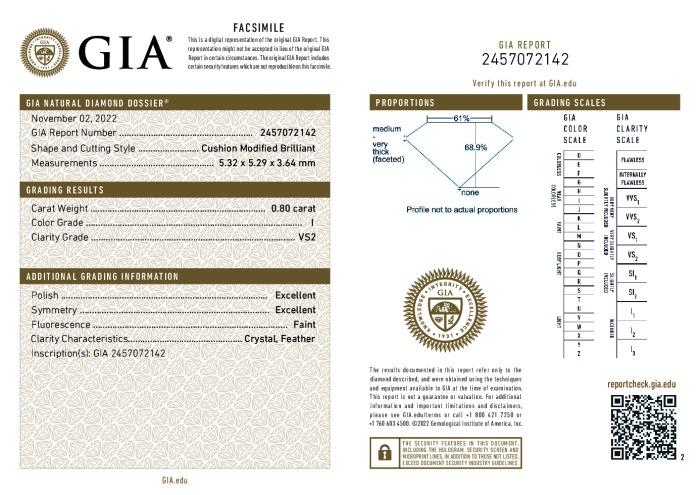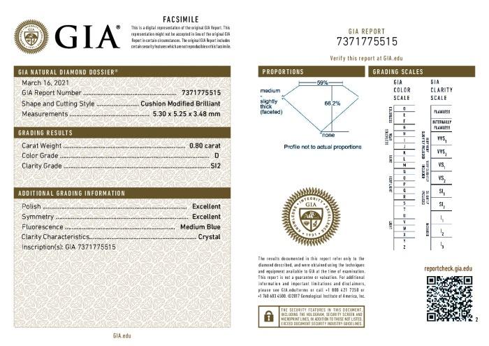 | 0.80 | Cushion | J | SI1 | GIA | 72.4 | 66 | 6.48x4.53x3.28 | Contact Vendor |